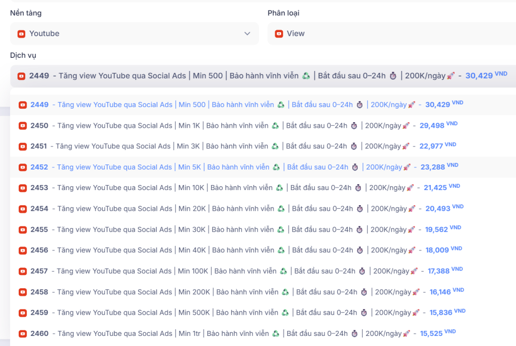 Mỗi gói hiển thị rõ tốc độ, giới hạn/ngày, thời gian bắt đầu, bảo hành (nếu có). Với video mới, khuyến nghị nhịp chậm–vừa để dữ liệu sạch; khi retention/CTR tốt, mới nâng nhịp để giữ đà. Xác nhận báo giá tăng view youtube bám KPI 3–7 ngày.